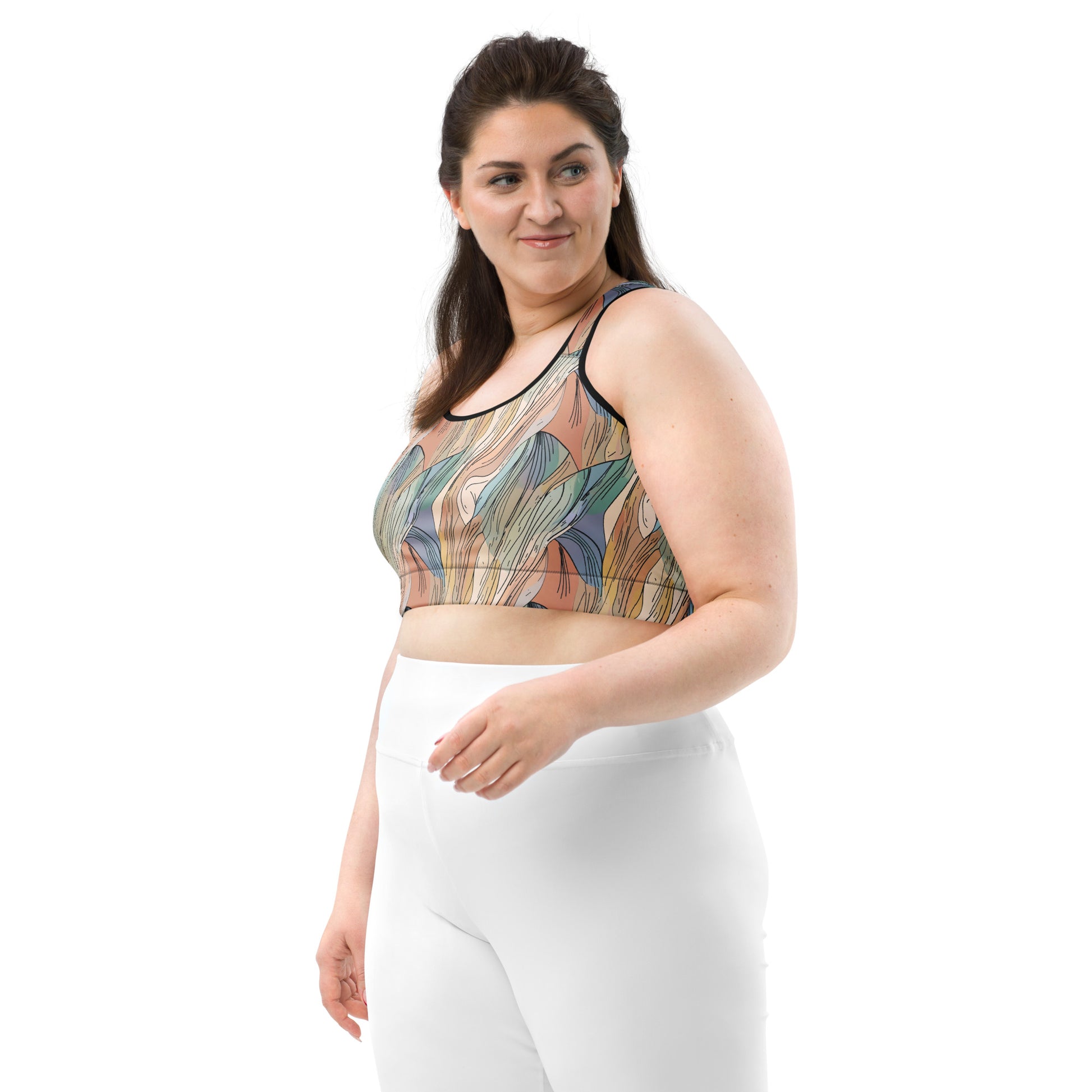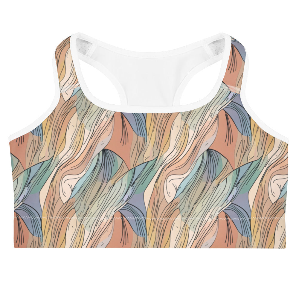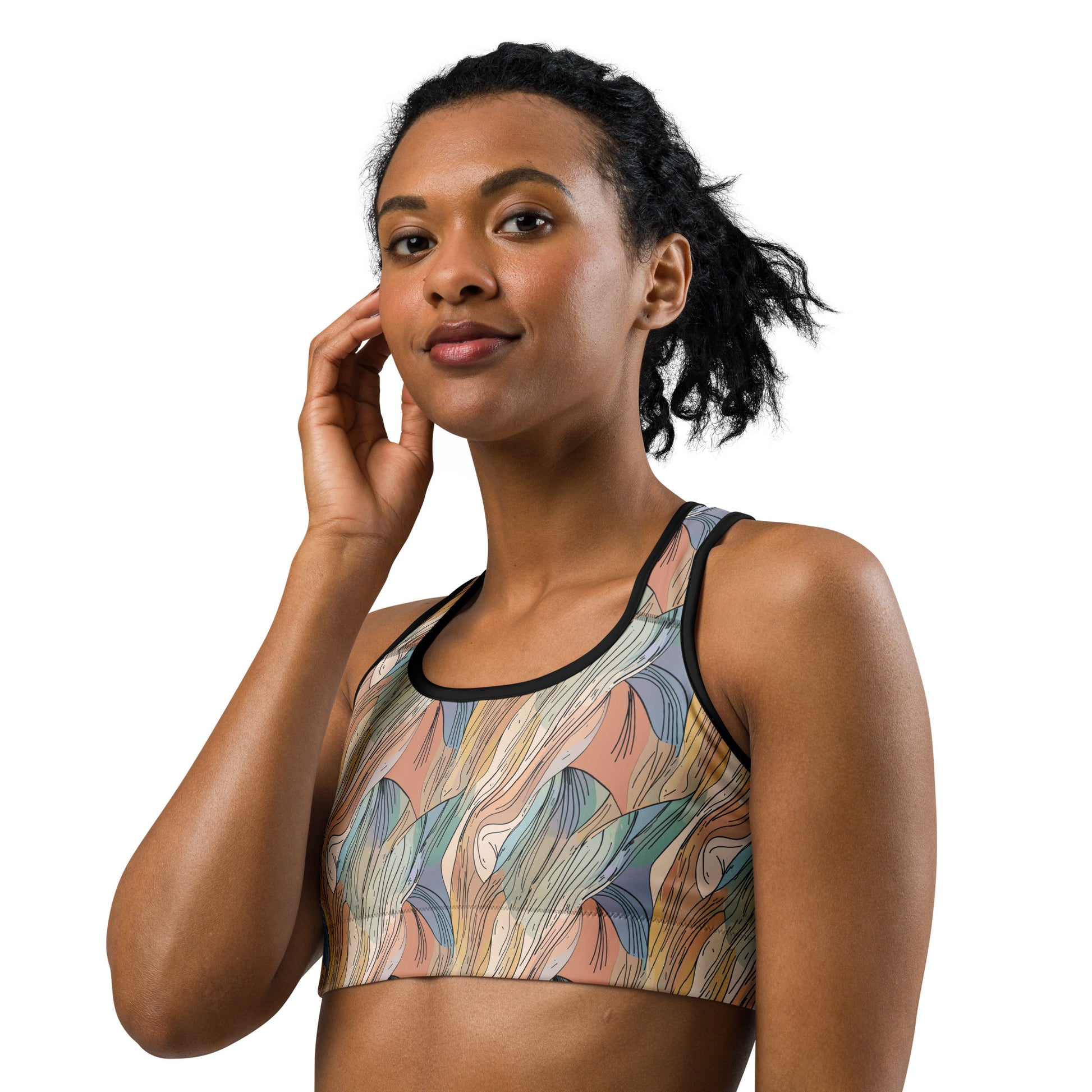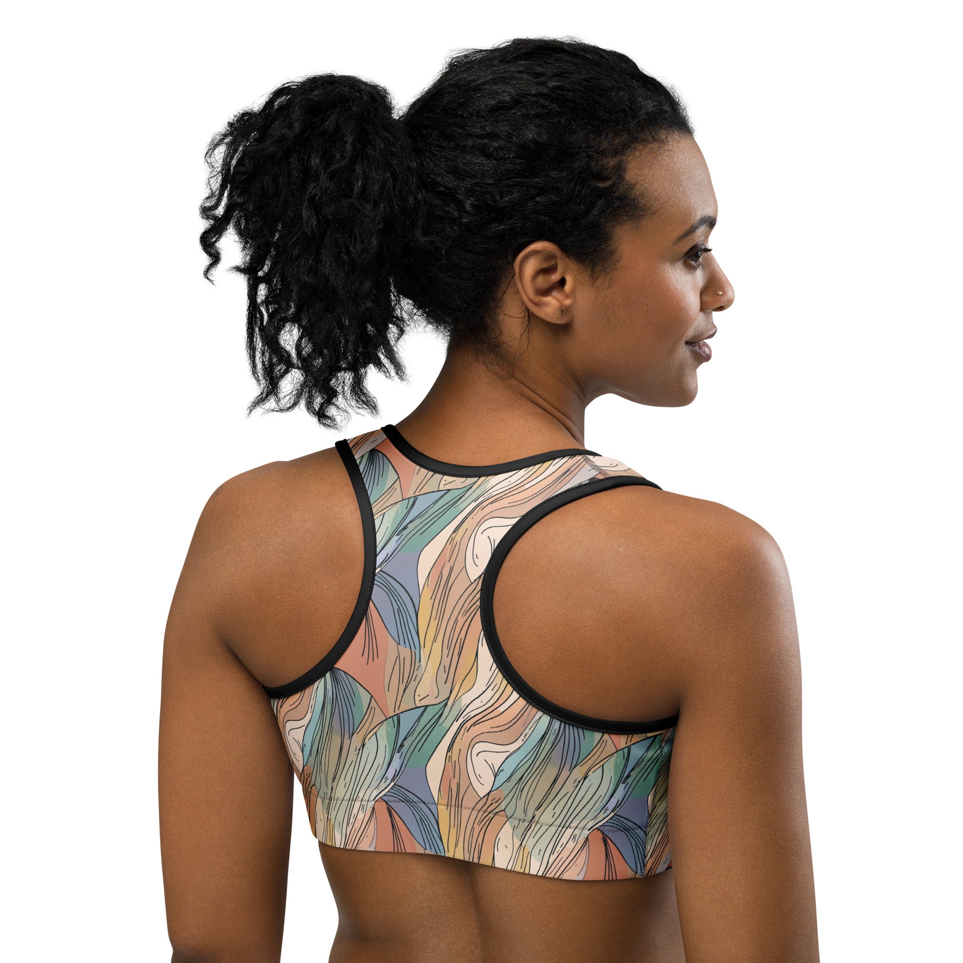 This gorgeous sports bra is made from moisture-wicking material that stays dry during low and medium intensity workouts. The bra has support material in the shoulder straps, double layer front, and a wide elastic band to ensure constant support.